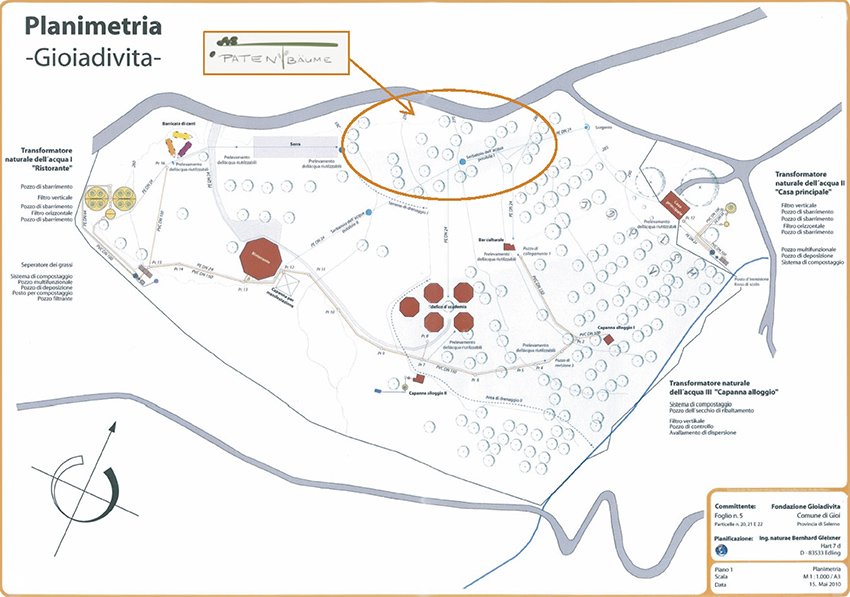Wir unterstützen das Olivenbaum-Projekt von Gina. Das Olivenbaum-Projekt schützt 210 Olivenbäume, von denen einige schon über 300 Jahre in dem süditalienischen Boden auf etwa 4,2 Hektar wurzeln. Das stiftungseigene Grundstück liegt etwa 140 km südlich von Neapel im Naturpark Cilento, einem UNESCO-Biosphärenreservat und Welterbe. Damit unser Beitrag Wurzeln schlägt, haben wir die Patenschaft eines ganzen Hanges voller Olivenbäume übernommen, unsere sogenannten "Paten(t)bäume". Jeder Baum hat ein markenmäßiges Namensschild erhalten, wie es unten als dreijährig geschütztes Design abgebildet ist.
