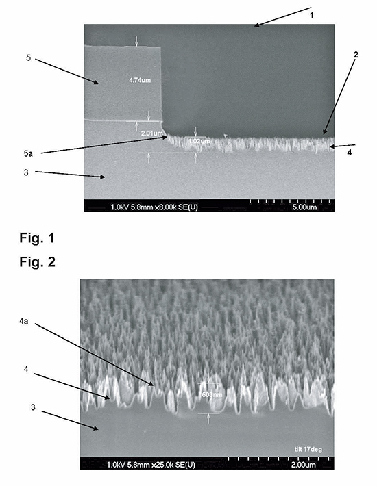 Mithilfe eines RIE-Ätzverfahrens für Silizium (3) wird ohne jegliche zusätzliche Strukturierungsmaßnahme (e-beam, Interferenzlithographie, o.a.) durch Auswahl der Gasanteile des Ätzplasmas in einer Selbstorganisation eine kristallfehlerfreie, nadelförmige Struktur (4,4a) mit großem Aspektverhältnis und mit Nanodimensionen auf der Oberfläche von Siliziumscheiben erzeugt. Eine breitbandige Entspiegelung wird erreicht, die eine vielfältige Verwendung finden kann.